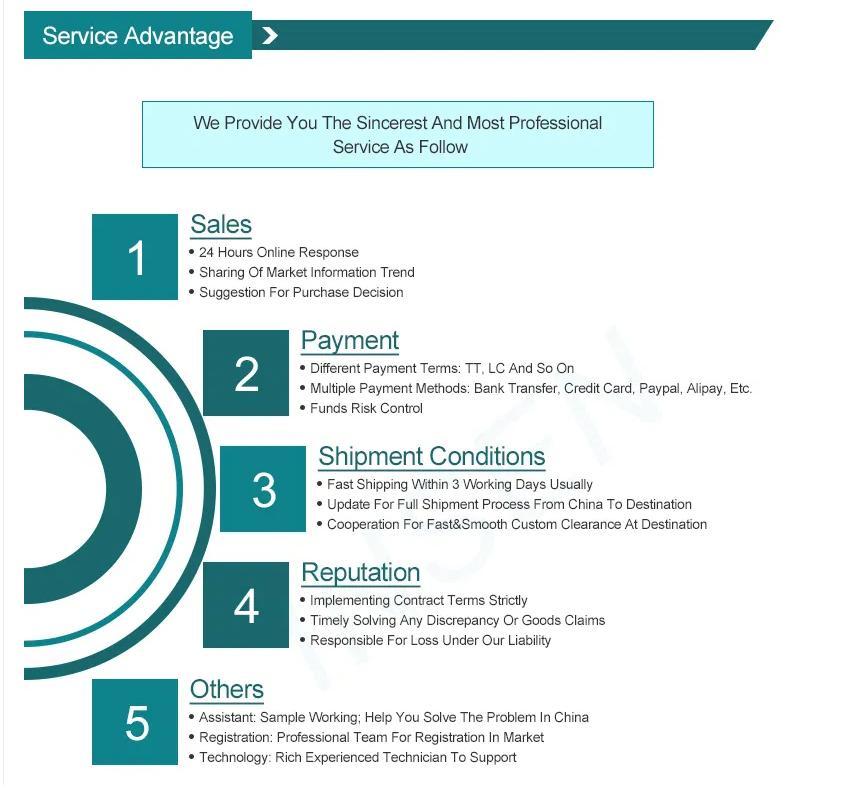 Delivery: We have our own delivery channels, and we are responsible for customs clearance and 100% delivery of the goods to your doorstep.(FedEx/USPS/UPS/DHL/TNT by air or sea)Payment: T/T, Alibaba trade assurance, Credit cards, Bank transfer, Bitcoin and other payment methods.